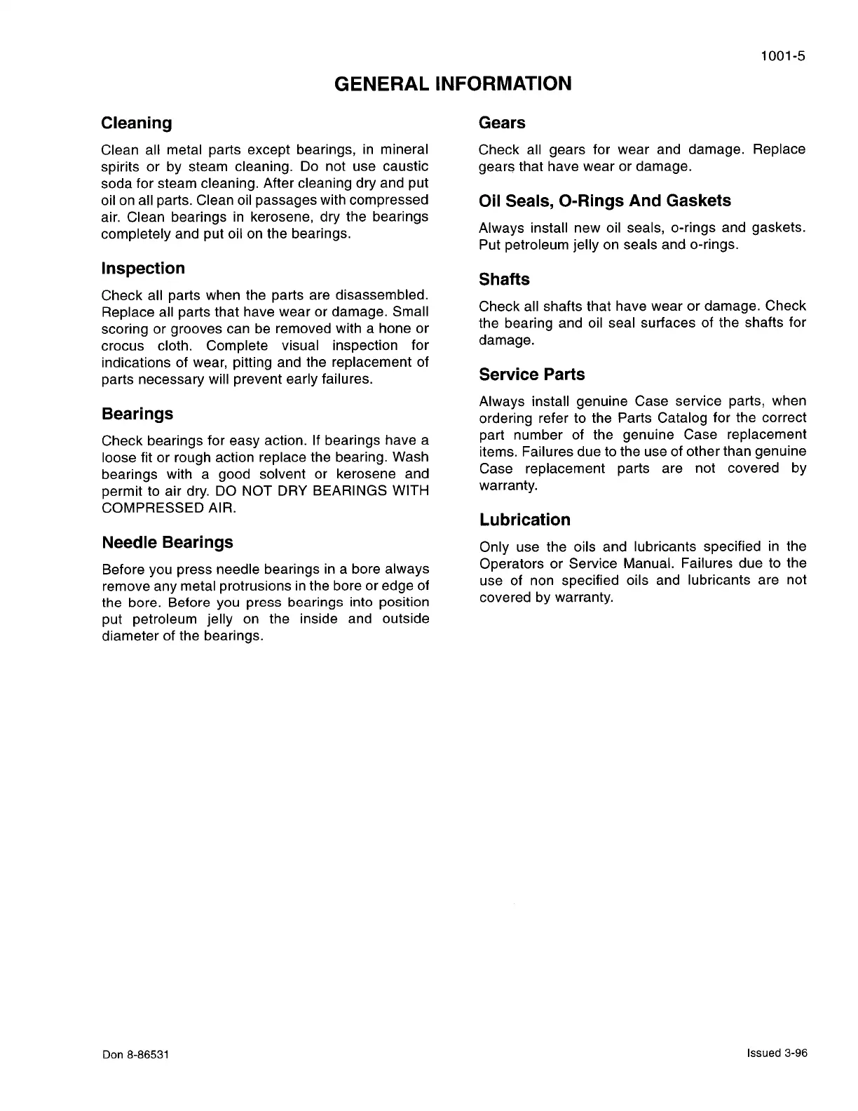 Case C70 - General Maintenance Information