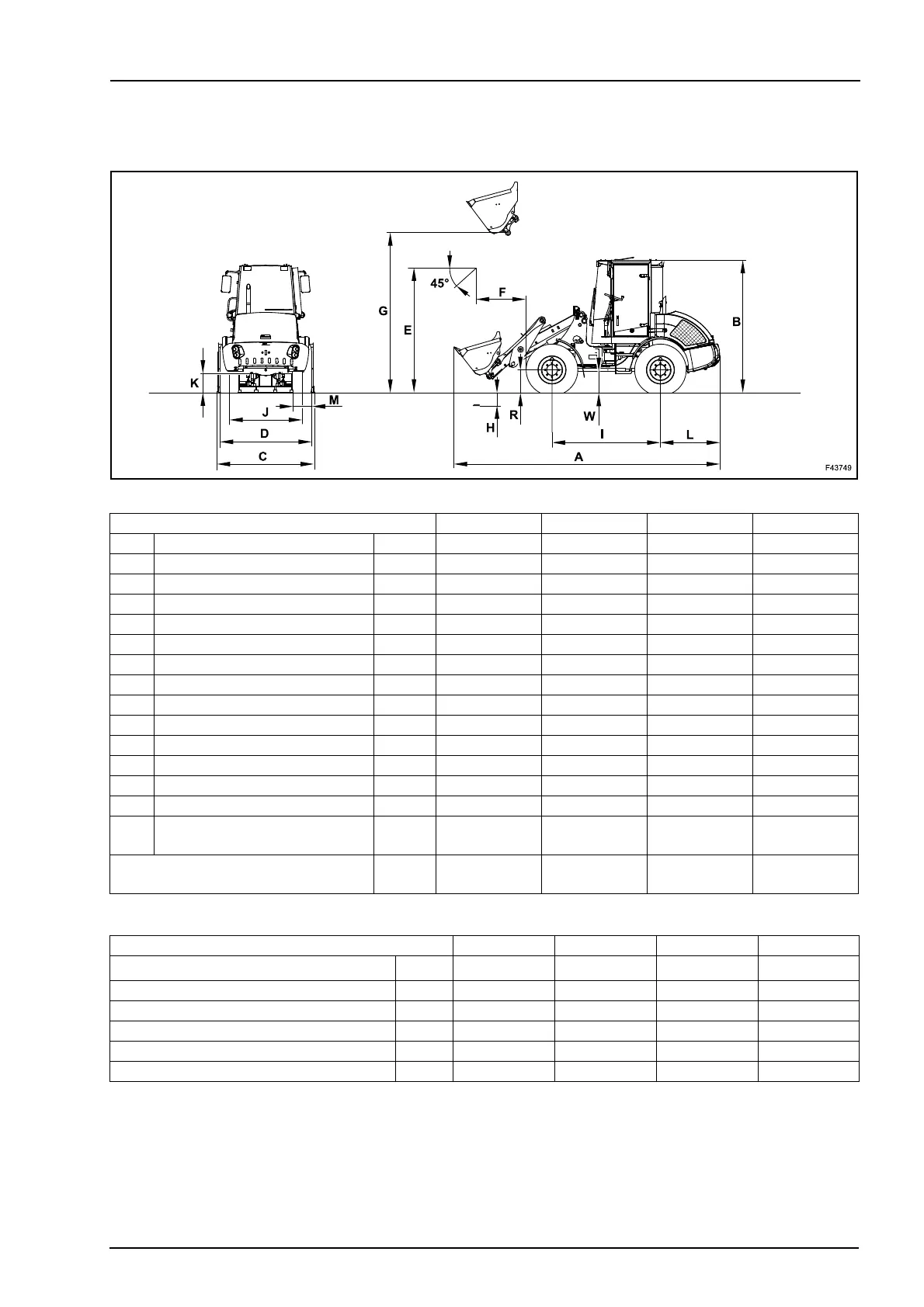 Dumping load - turned by 40° ISO kg (lb) 2945 (6500) 3100 (6820) 3630 (7986) 3755 (8261)