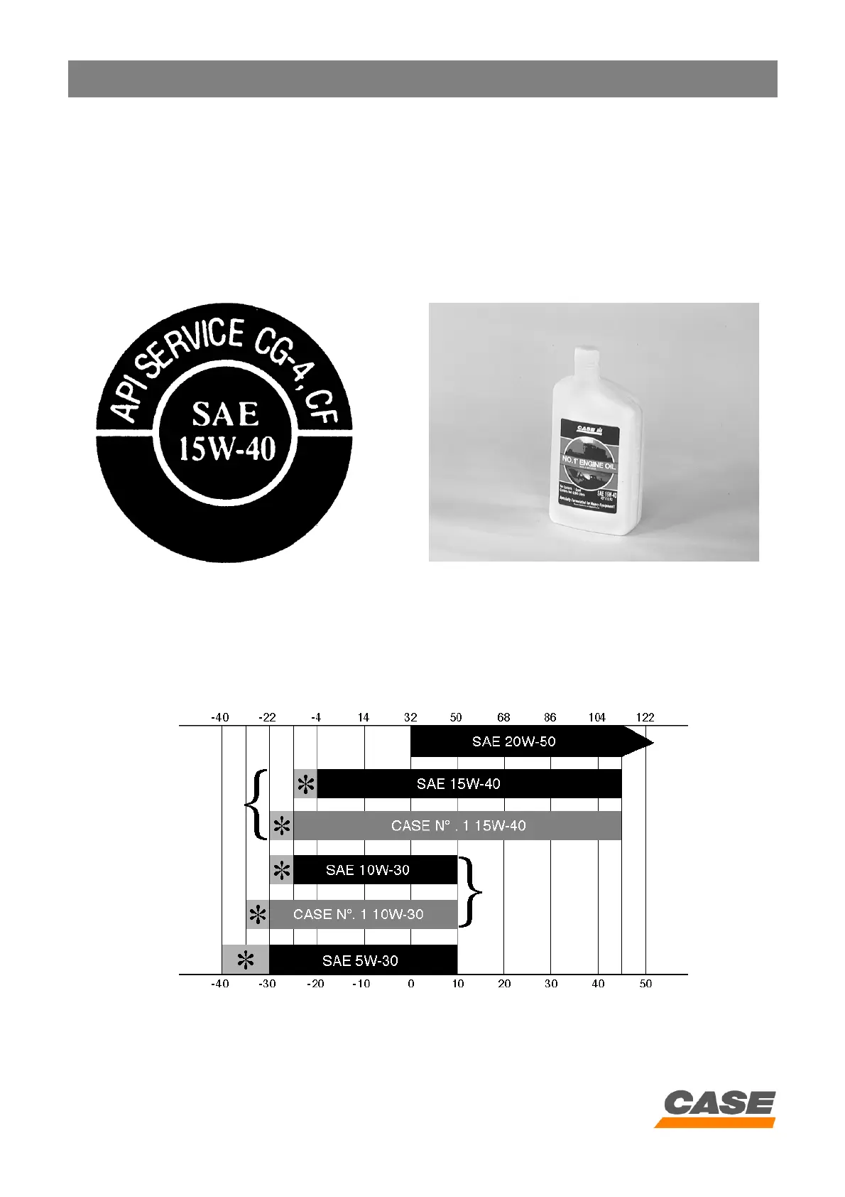 If CASE N°1 Multiperformance or Performance engine oil cannot be obtained, use only oil of the API/CG/CF cate-