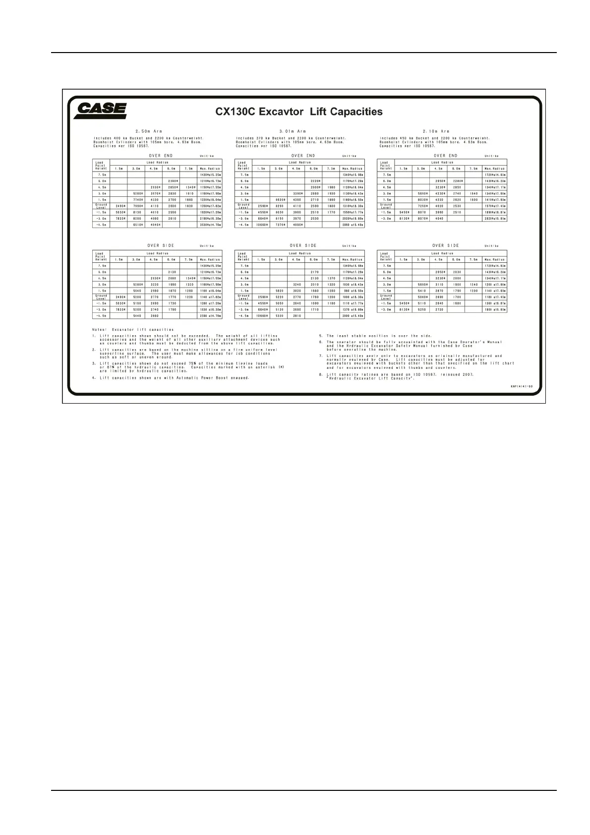 7.:Liftcapacitiesapplyonlytoexcavatorsasorigi-