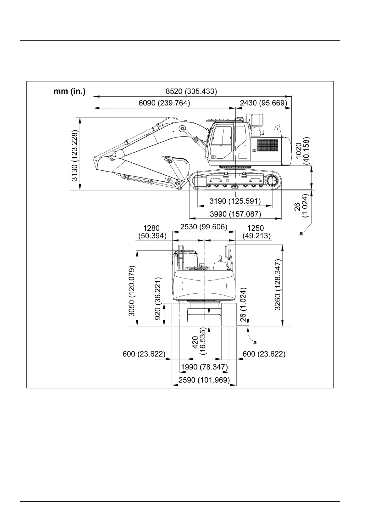 NOTE:Thediagramgivesvaluesthatincludetheshoelugheight“a”[26mm(1.024in)].