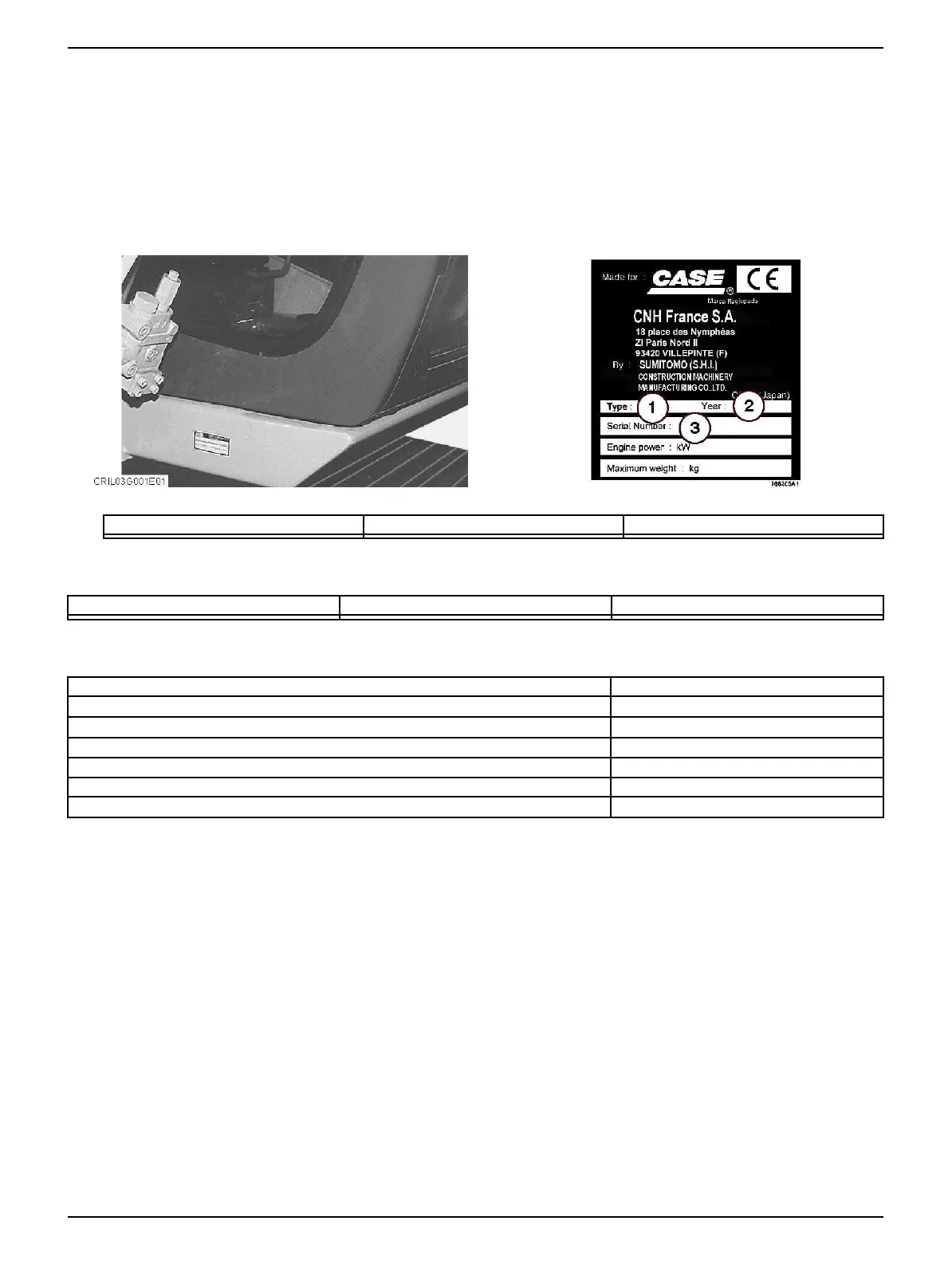 (manufacturer’splate),mark,typeandserialnumberoftheengine,andserialnumbersofhydrauliccomponents.