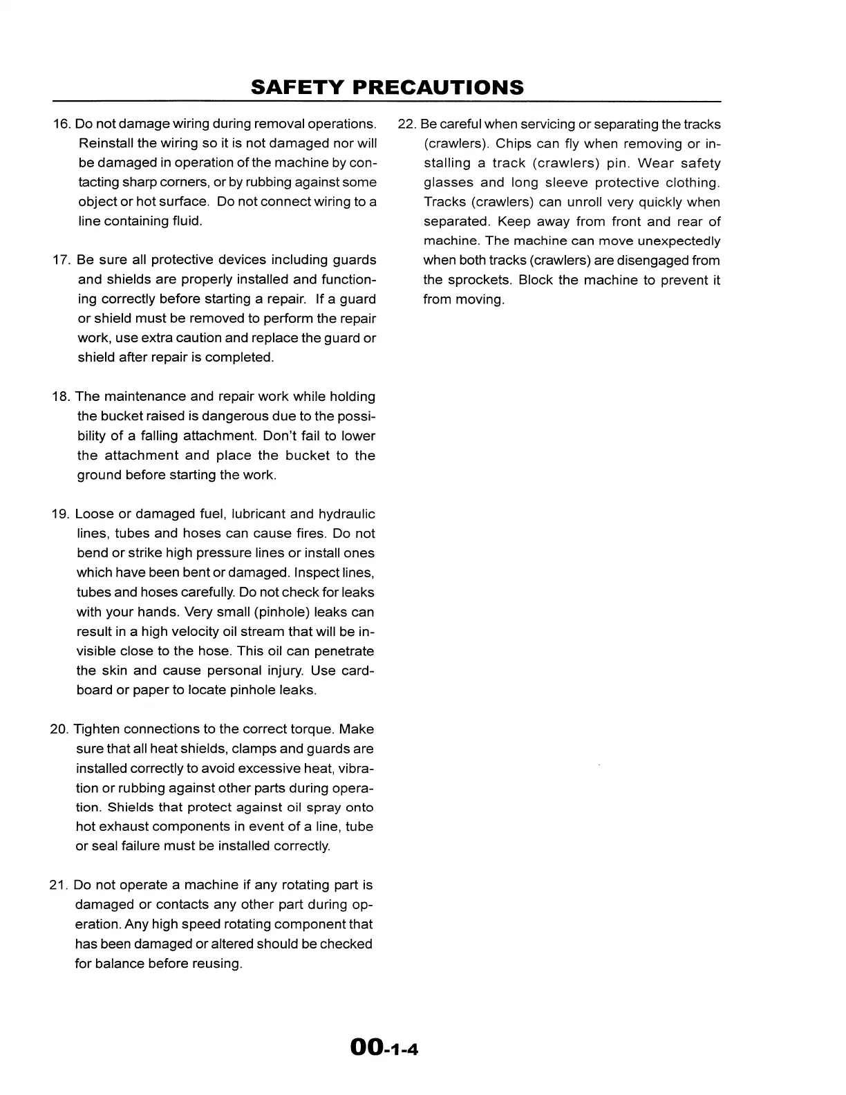 22. Be careful when servicing or separating the tracks
