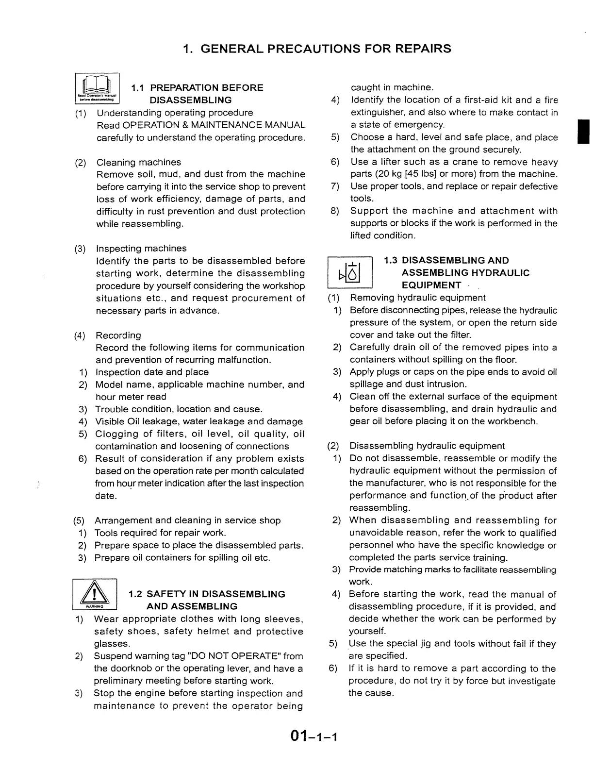 1. GENERAL PRECAUTIONS FOR REPAIRS