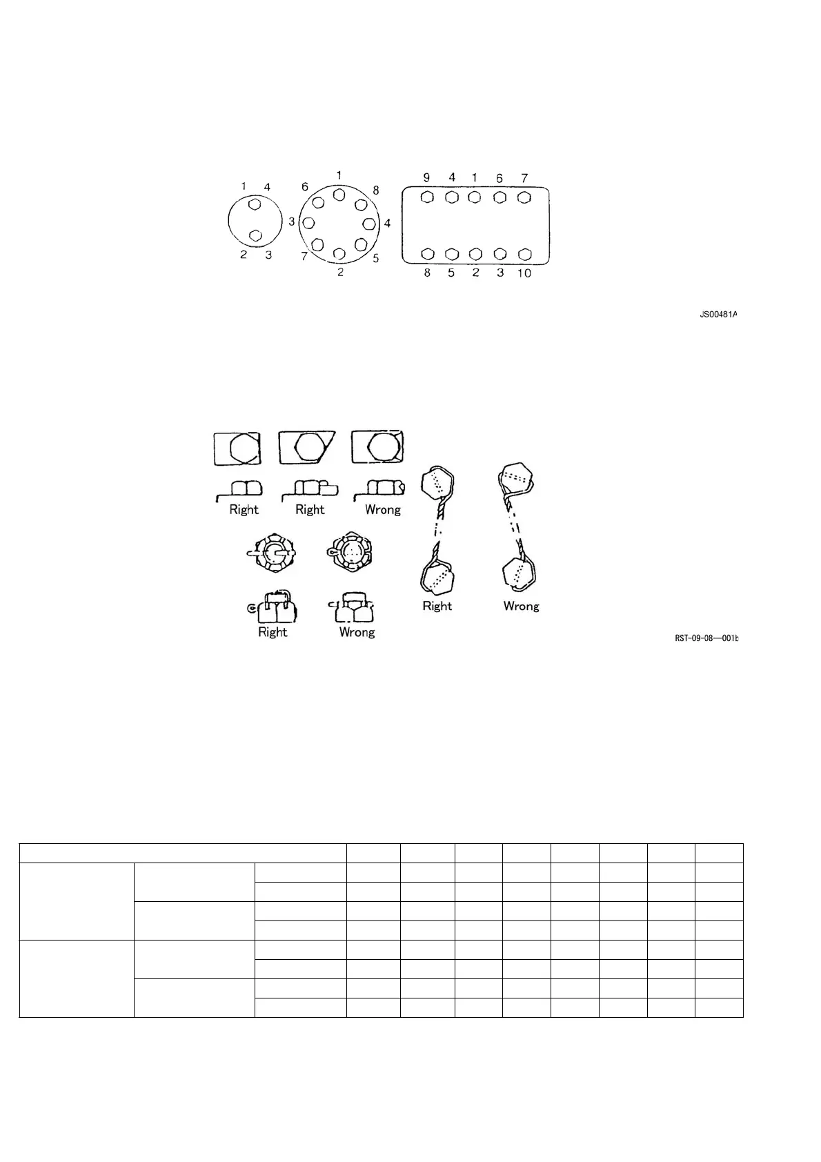 Tighten and retighten bolts and nuts in each section according to the table. Also before and after day-to-day work,