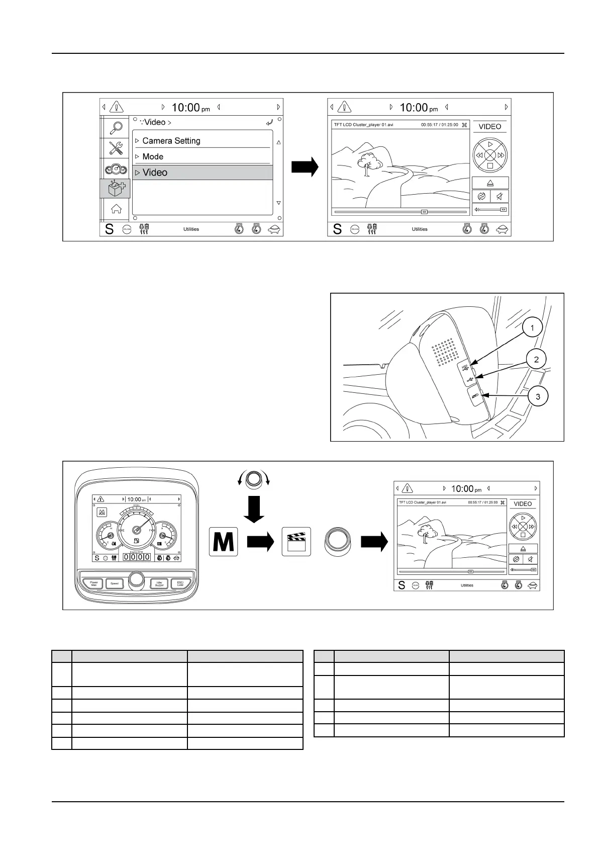 Forsafety,over1100RPMofengine,thescreenturnsintotheoperationscreenwithMP4orcodecleplaying.