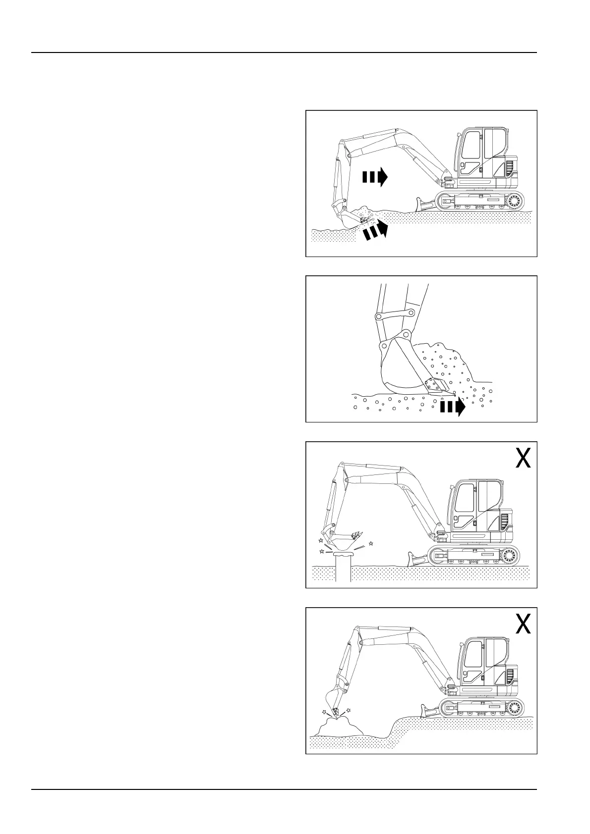Setthetracksparalleltothelineoftheditchtobeexcavatedwhendiggingaditch.Donotswingwhiledigging.