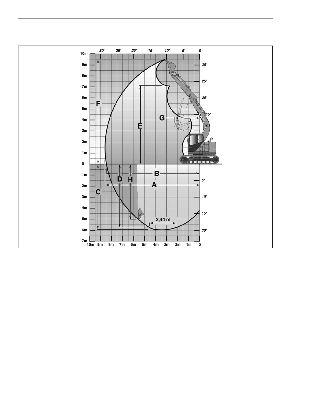 D. (Maximum digging depth over a length of 2.44 m) (8 ft.) .........................................................5.25 m (17 ft. 3 in)