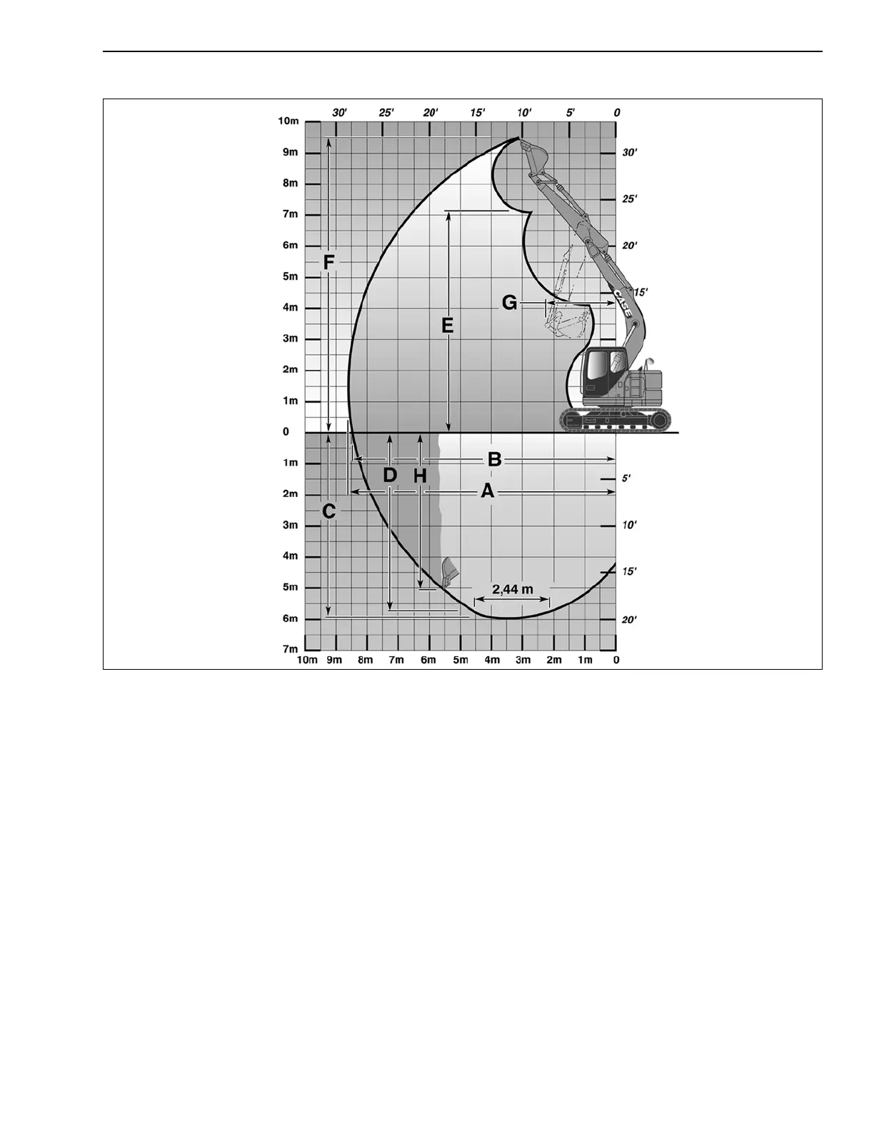 D. (Maximum digging depth over a length of 2.44 m) (8 ft.)......................................................... 5.70 m (18 ft. 9 in)