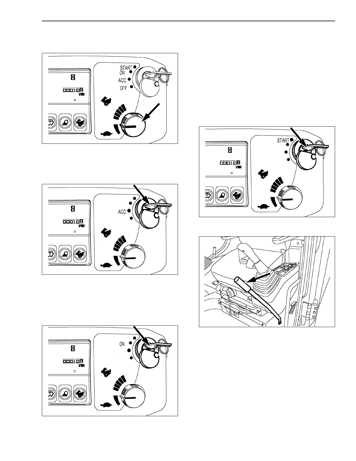 4. Insert the starter switch key then turn the key to