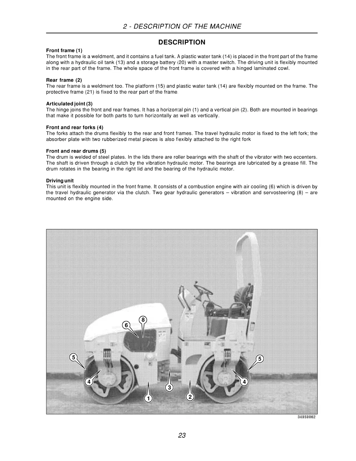 the travel hydraulic generator via the clutch. Two gear hydraulic generators - vibration and servosteering (8) - are