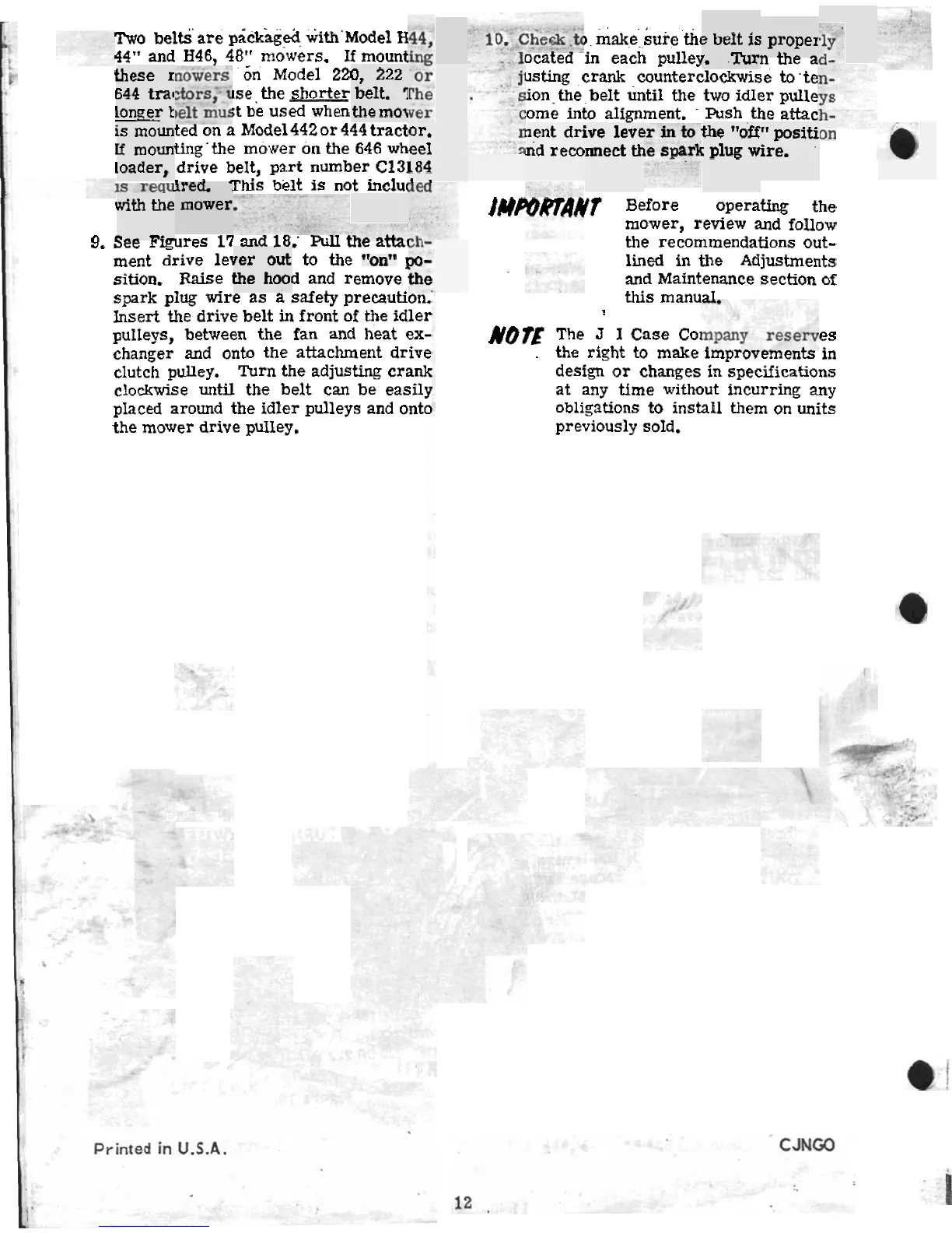 Case H40 - Drive Belt Installation; Final Belt Tension Check; Pre-Operation Review