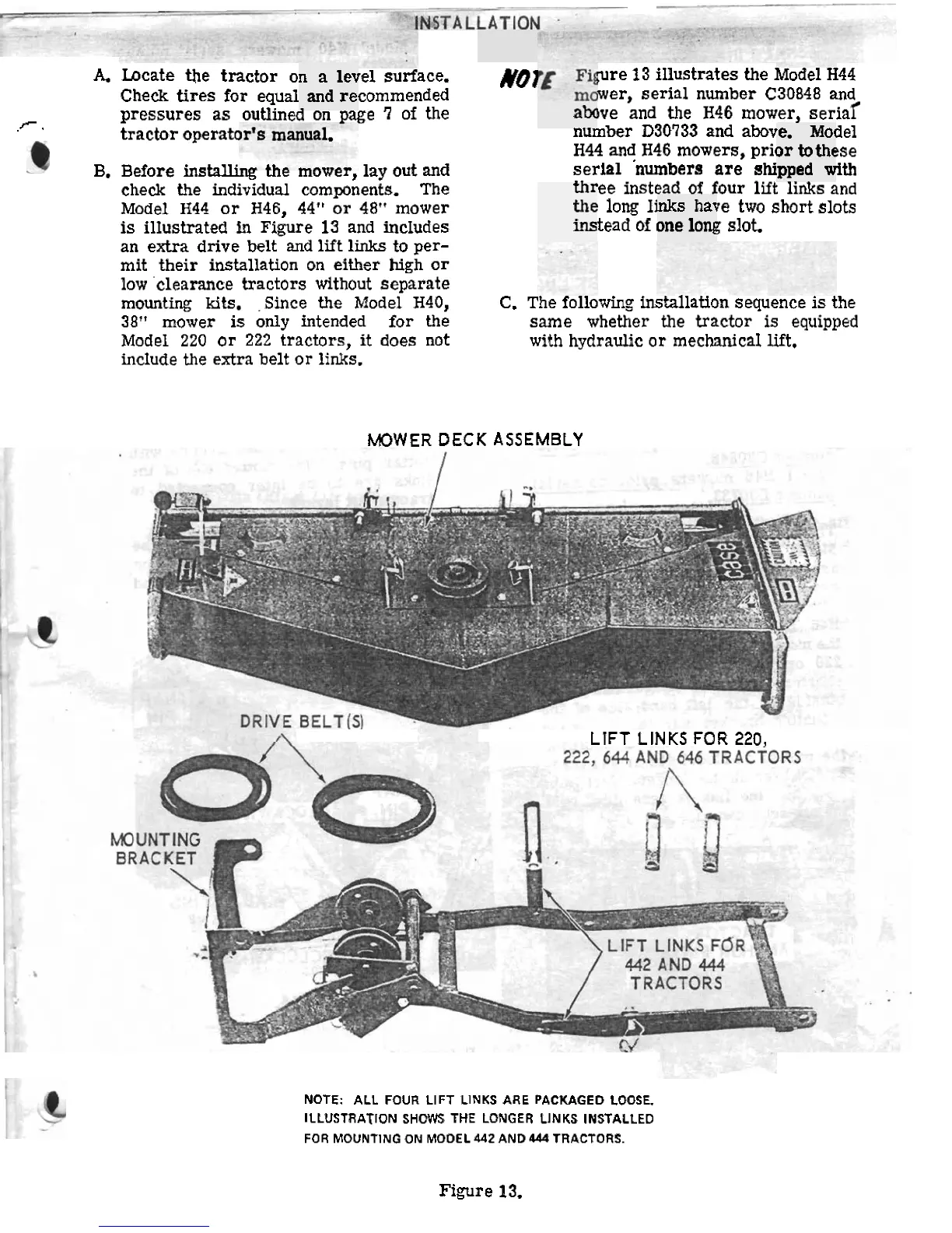 Case H40 - Installation; Component Check and Preparation; Lift Link Identification