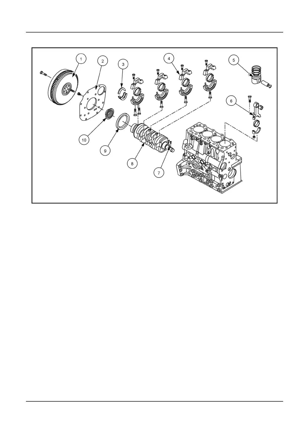 Thecrankshaftissupportedonvemainbearings.Thefrontbearingispositionedinaboreinfrontoftheblock.The