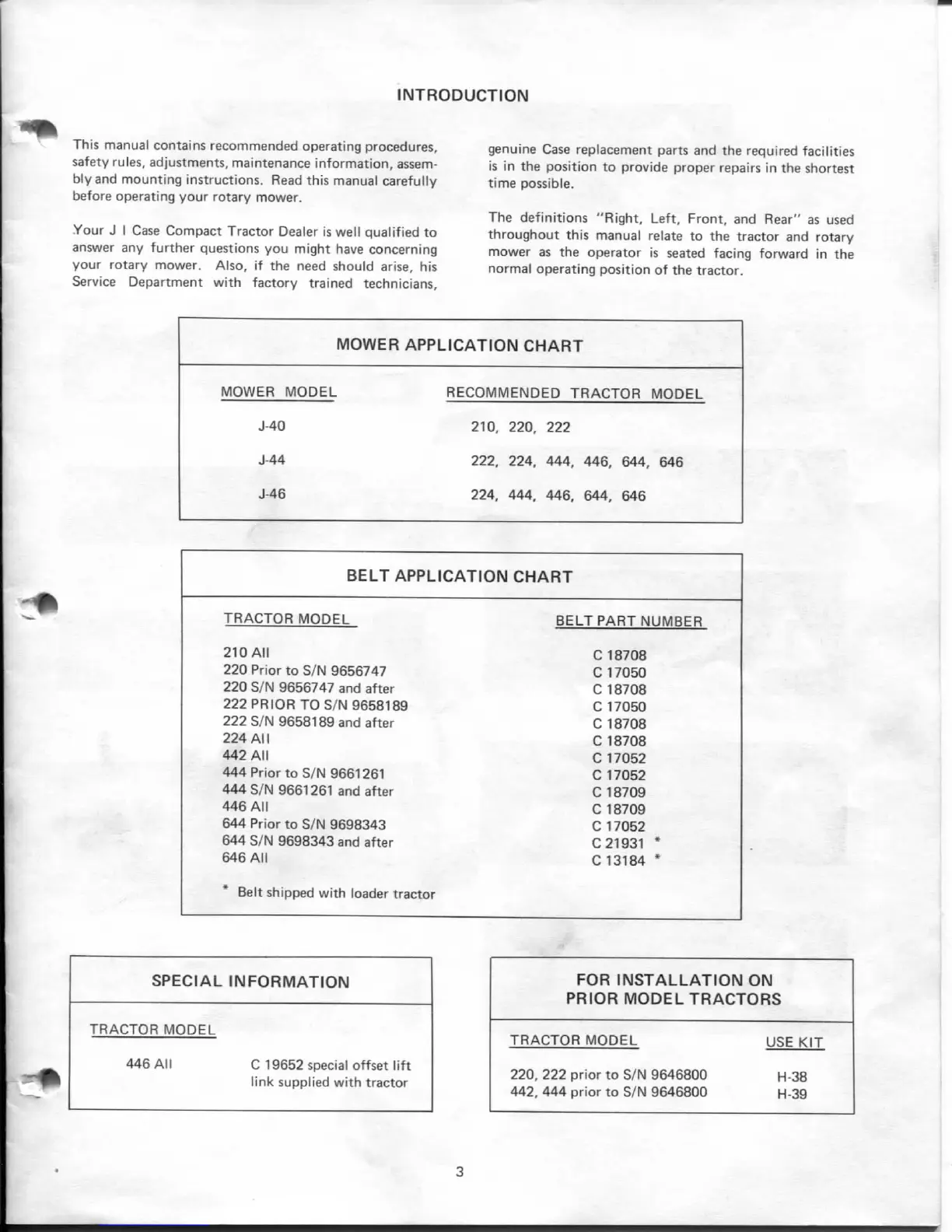 MOWER MODEL RECOMMENDED TRACTOR MODEL