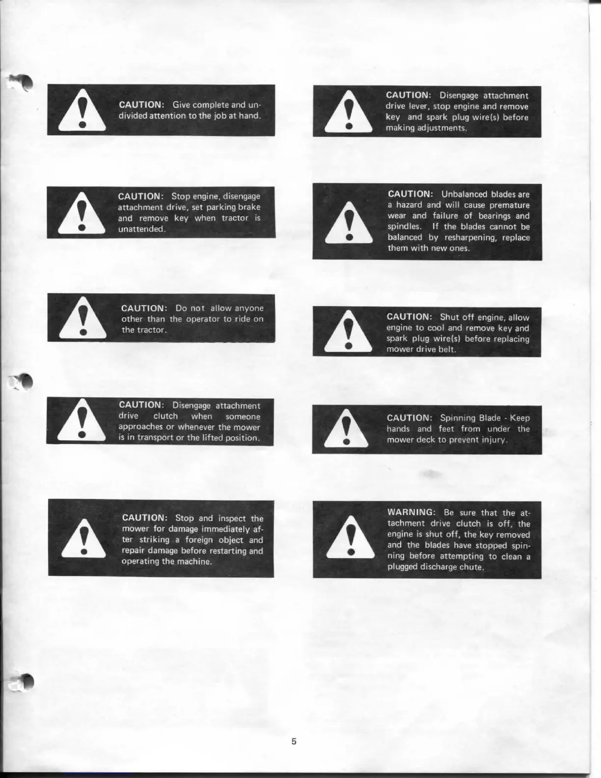 mower deck to prevent injury.