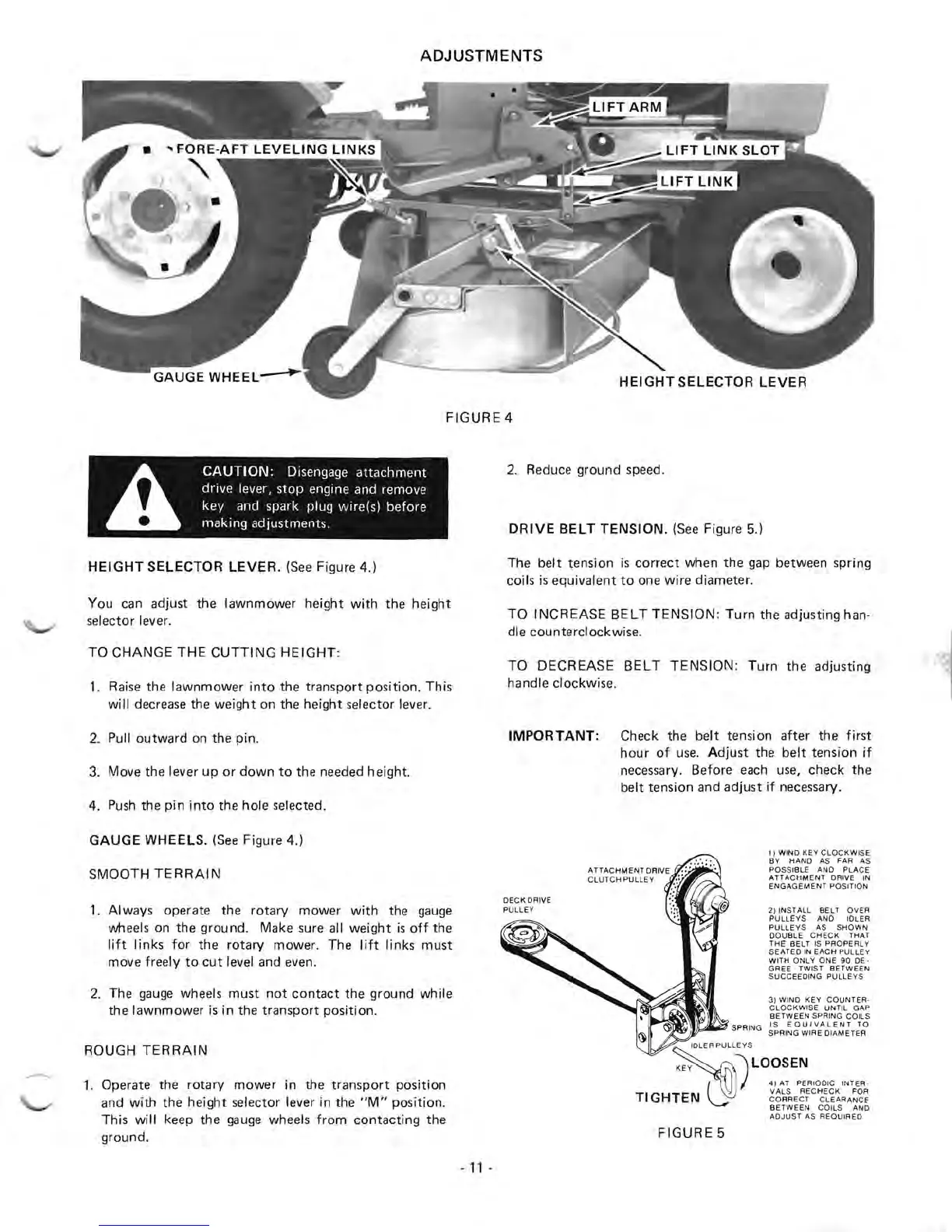 Case K40 - Adjustments; Height Selector Lever Adjustment; Gauge Wheel Adjustment; Drive Belt Tension Adjustment