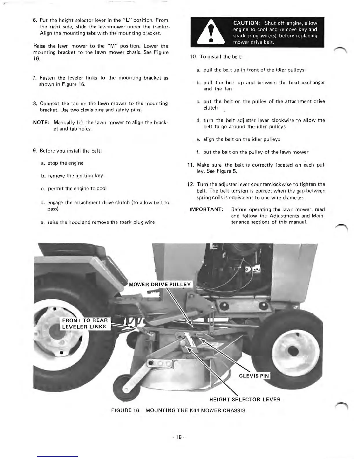 Case K40 - Installation Continued; Mower Chassis Mounting and Belt Installation