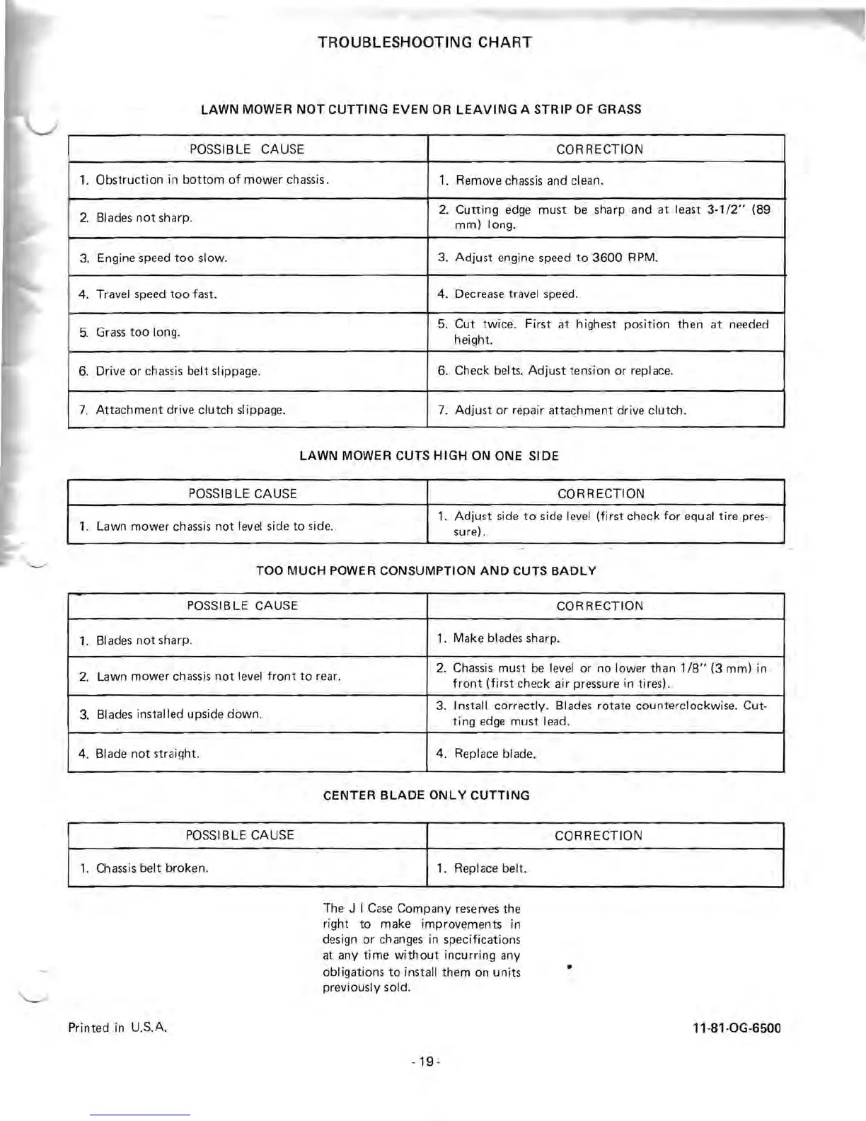 Case K40 - Troubleshooting Chart; Uneven Cutting Issues; One-Sided Cutting Problems; Power Usage and Cutting Quality