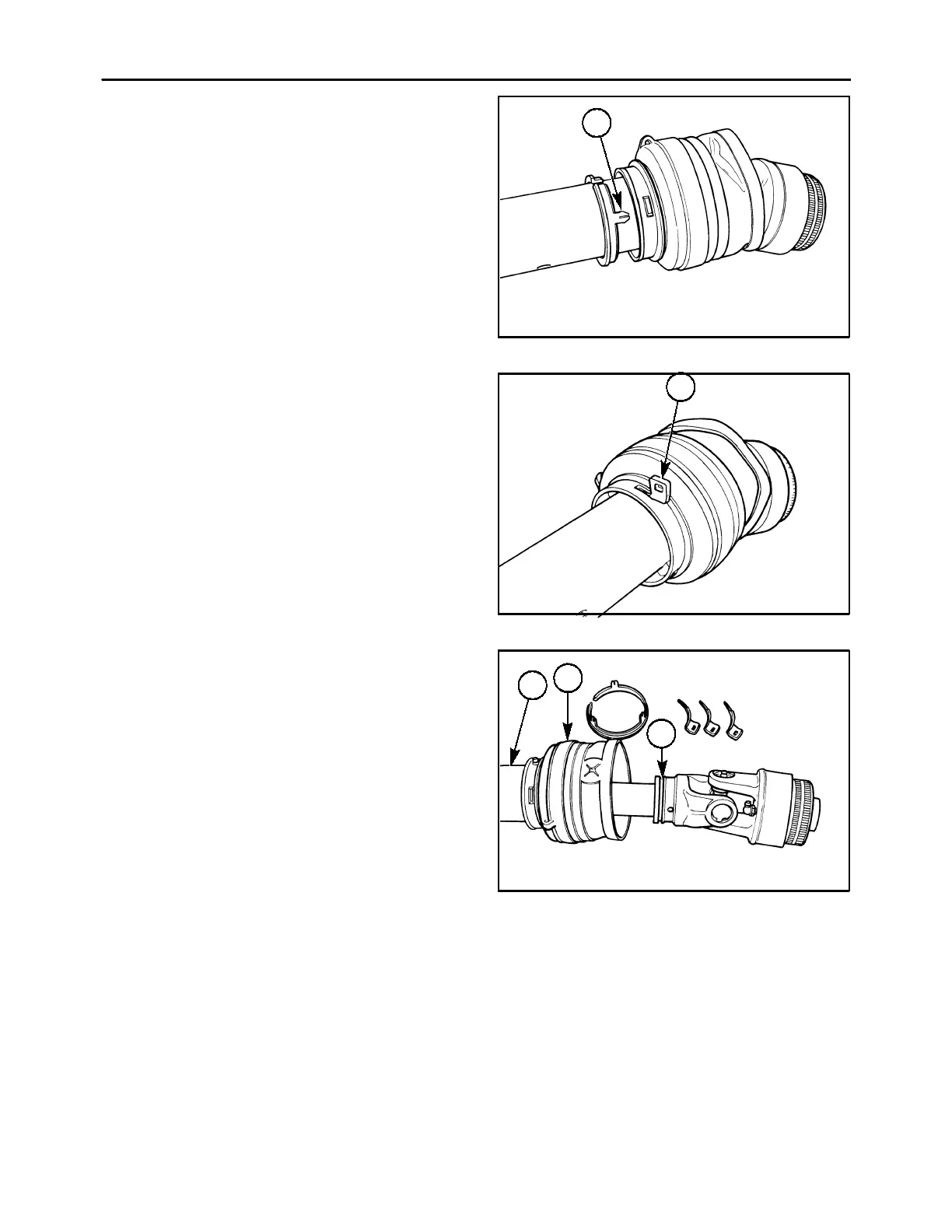3. Slide the shield tube, 1, and bell, 2, off of the PTO