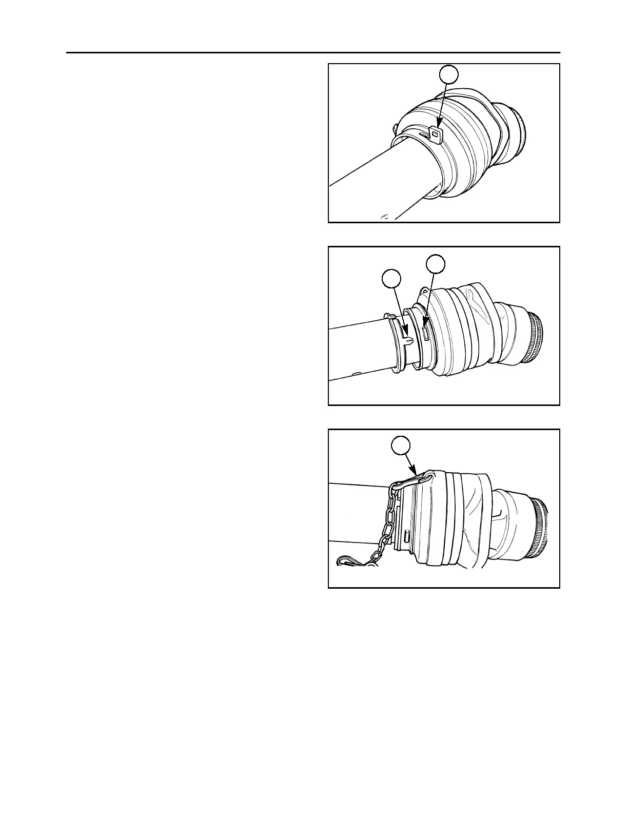 1. Slide the shield tube, 1, and bell, 2, onto the shaft.