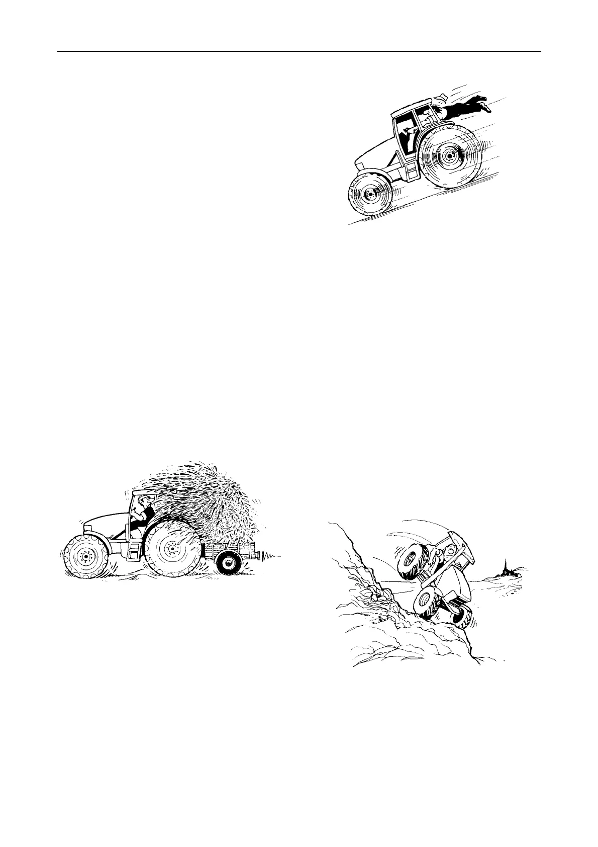 12. To avoid overturns, drive the tractor with care and