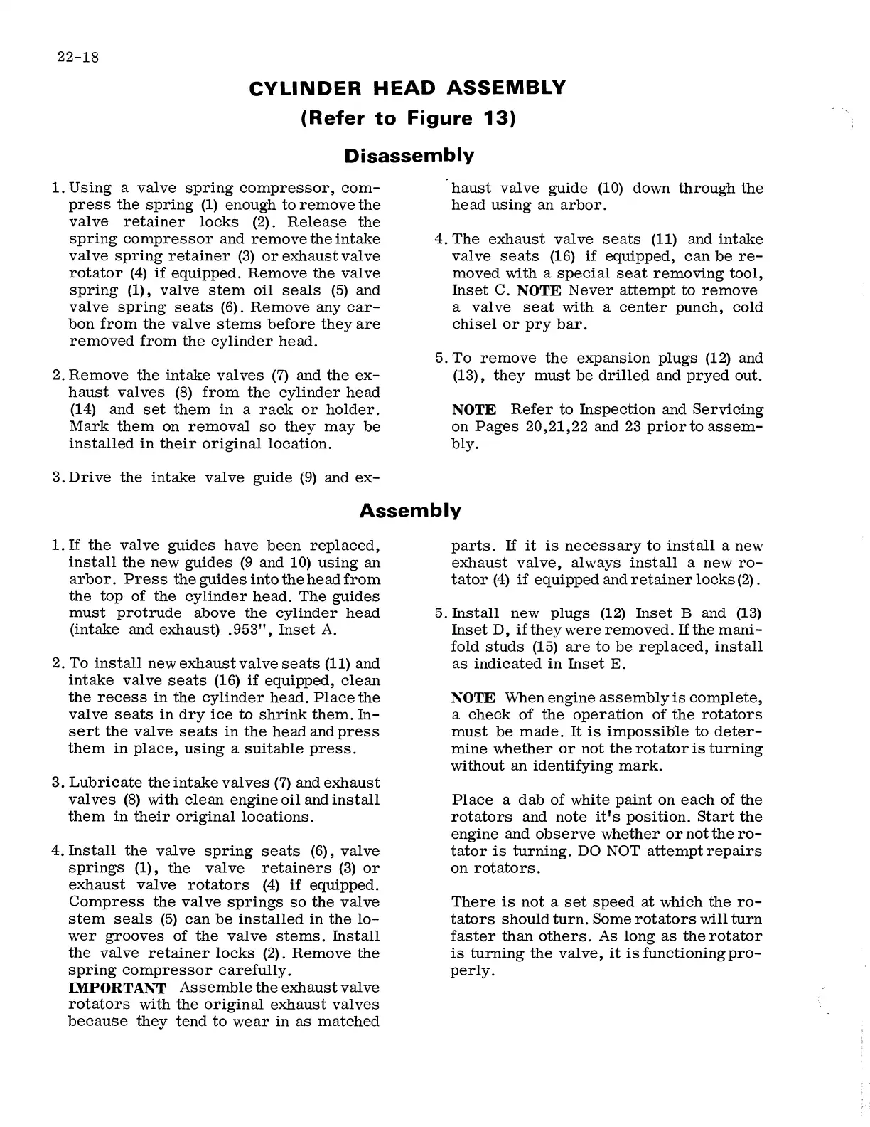 valve seats (16) if equipped, can be re-