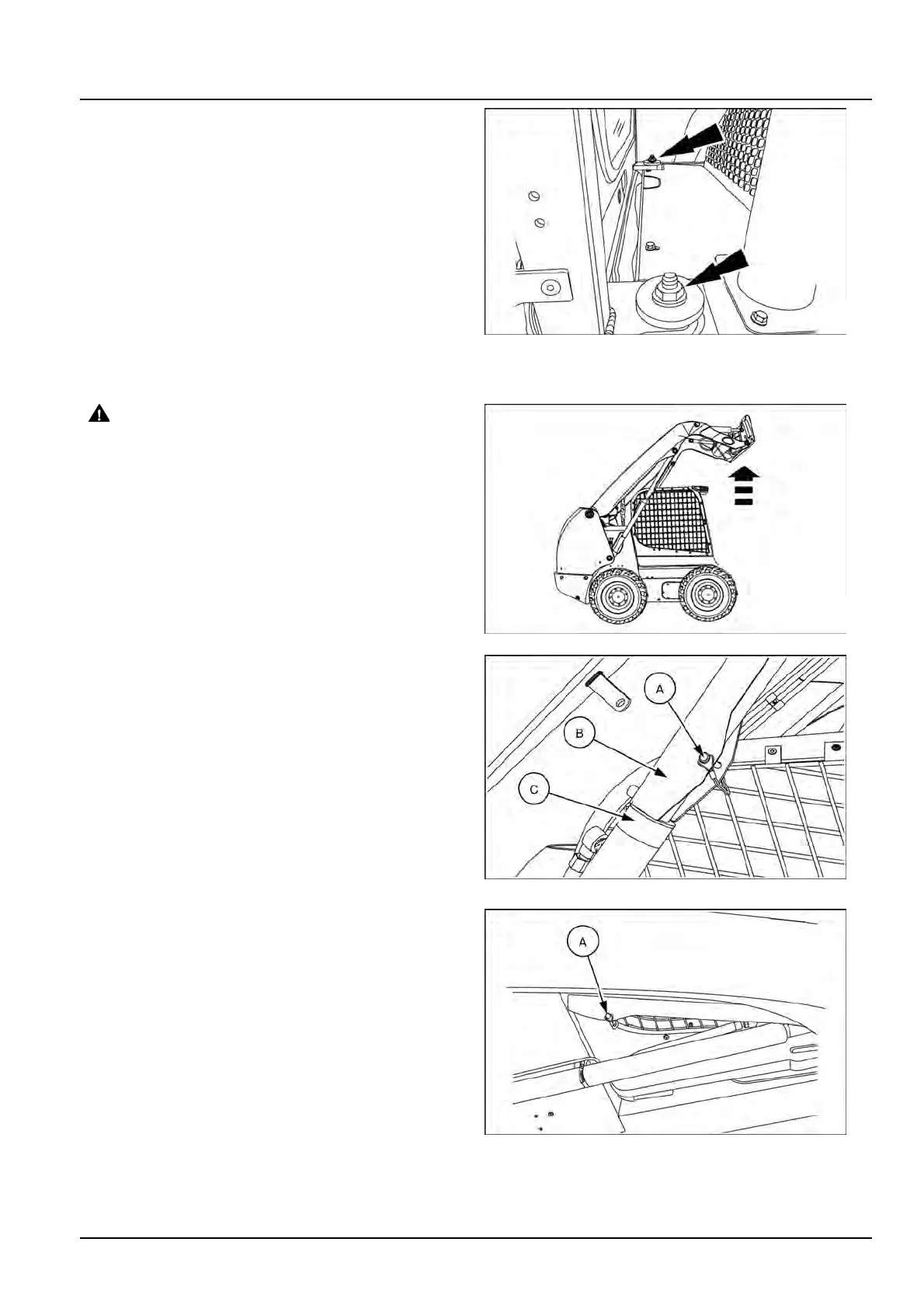 3.Raisetheloaderarmuntilthesupportstrut(B)isnot