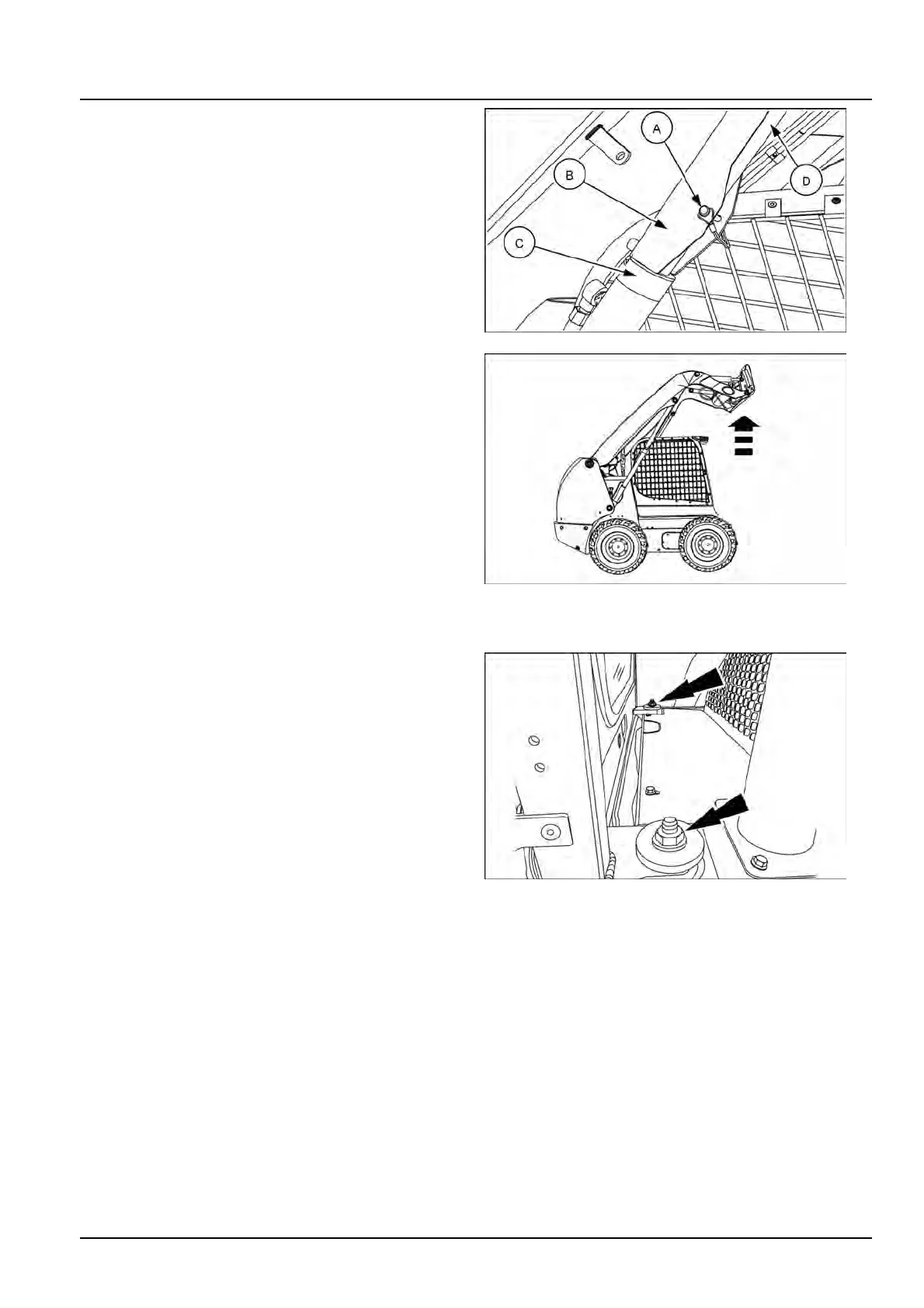 7.Slowlyraisetheloaderarmuntilthesupportstrut(B)