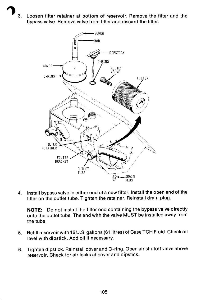 5. Refill reservoir with 16 U.S. gallons (61Iitres) of Case TCH Fluid. Check oil