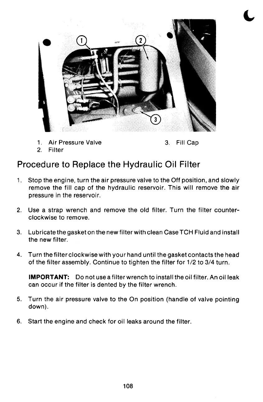3. Lubricate the gasketon the newfilter with clean CaseTCH Fluid and install