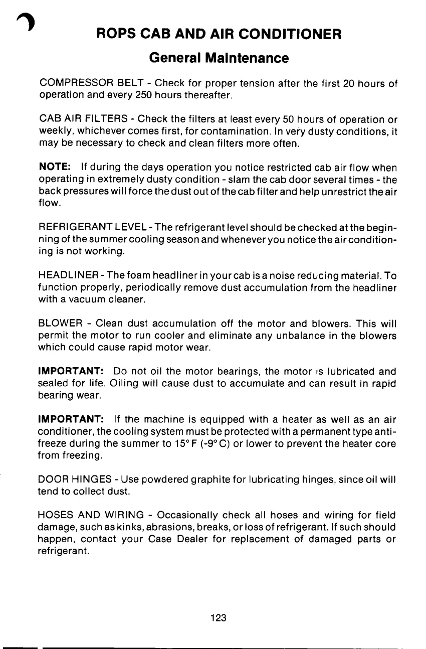 CAB AIR FILTERS - Check the filters at least every 50 hours of operation or