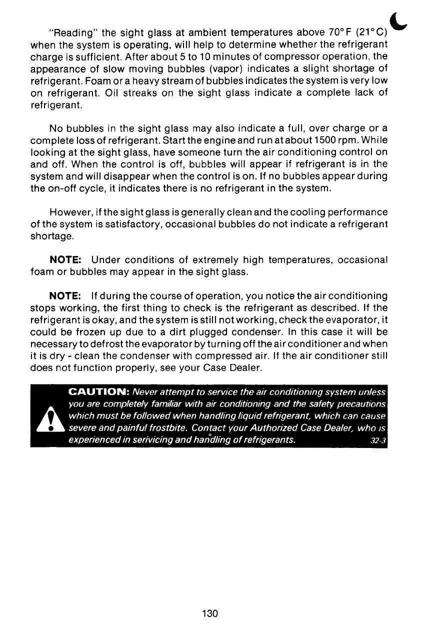 of the system is satisfactory, occasional bubbles do not indicate a refrigerant