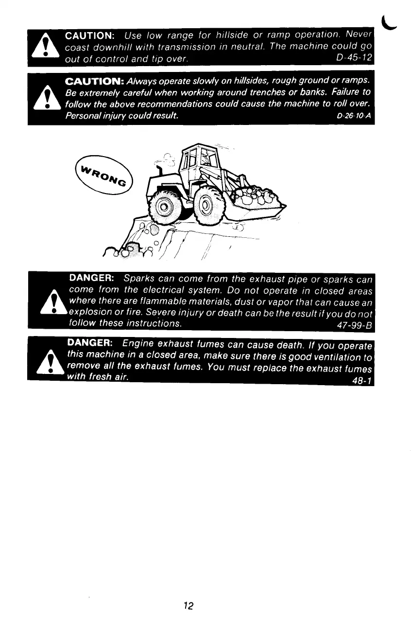 CAUTION: Use low range for hillside or ramp operation. Never
