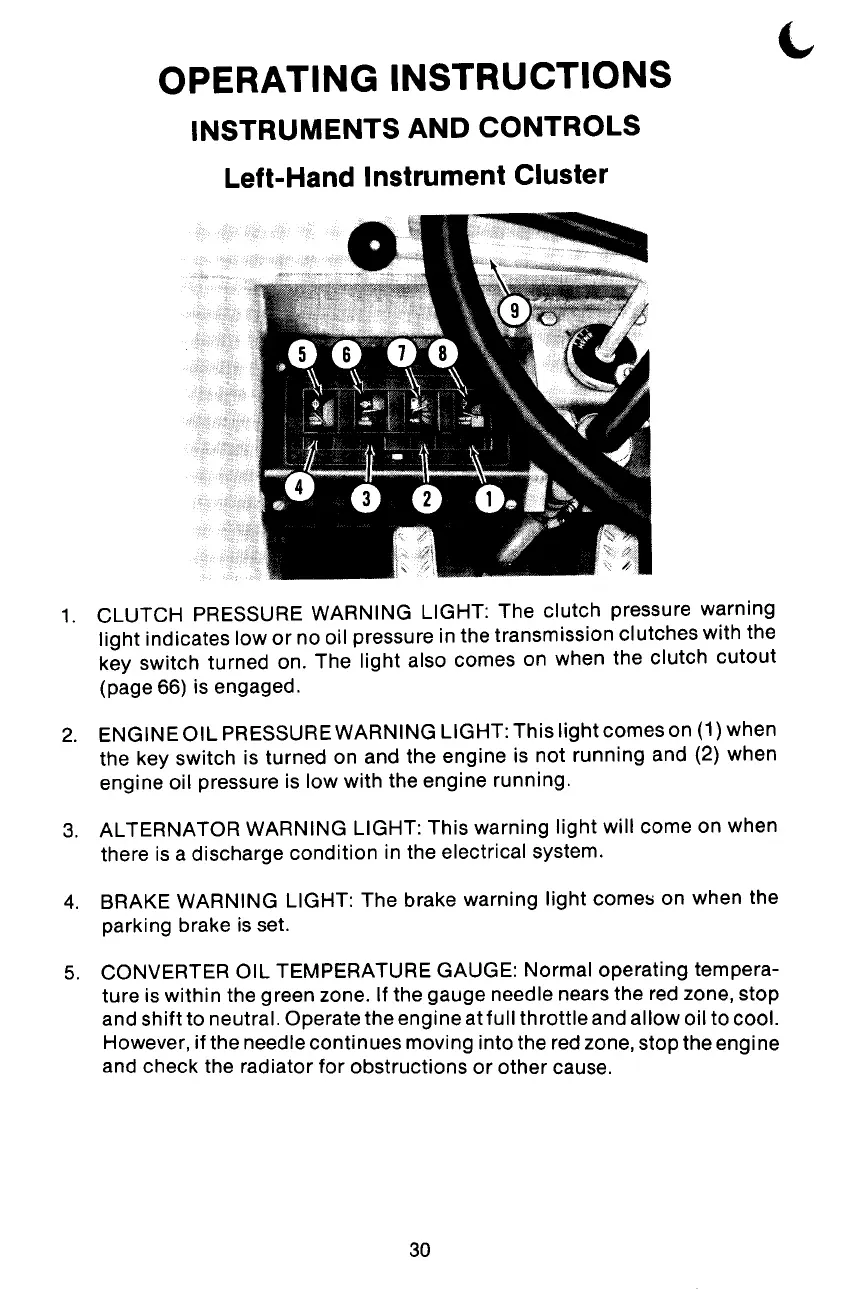 1. CLUTCH PRESSURE WARNING LIGHT: The clutch pressure warning