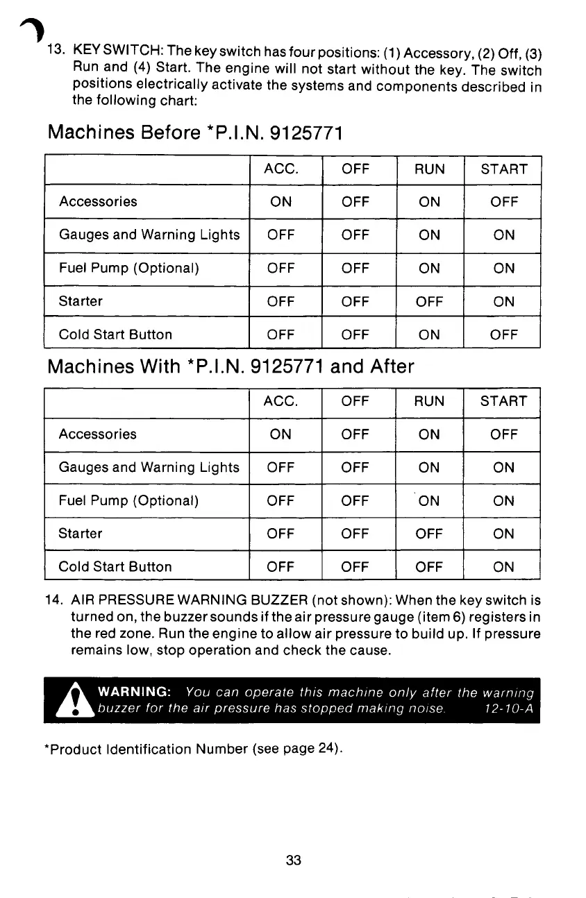 AIR PRESSUREWARNING BUZZER (not shown): When the key switch is