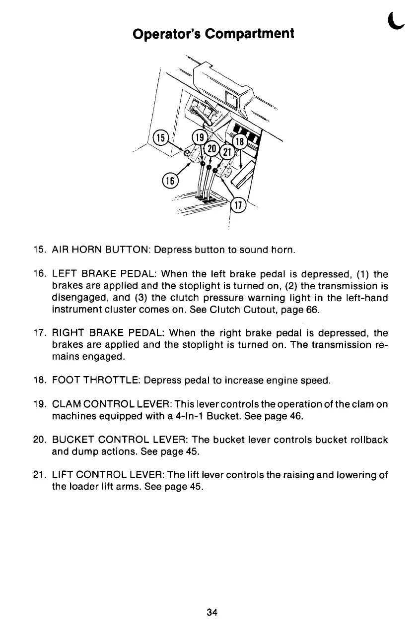 18. FOOT THROTTLE: Depress pedal to increase engine speed.