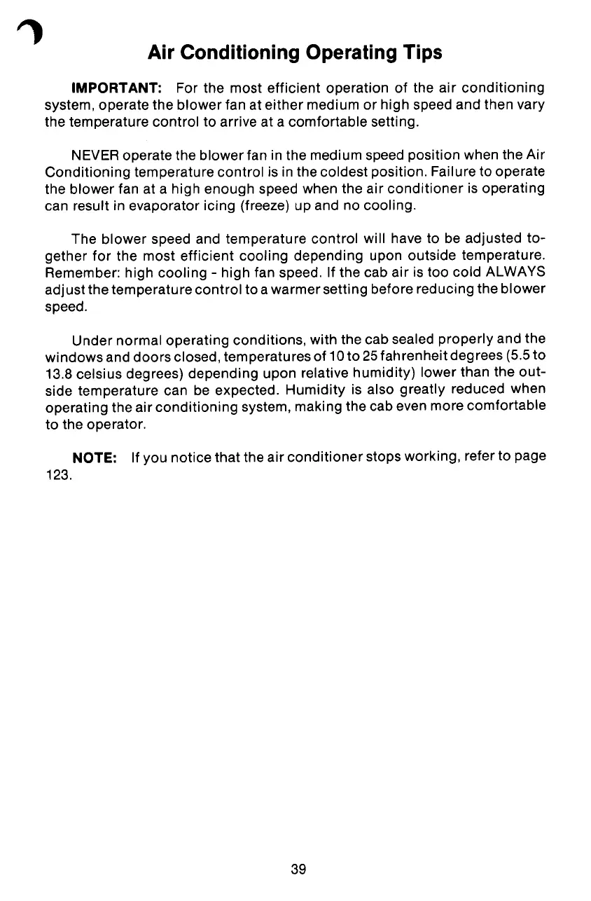 Remember: high cooling - high fan speed. If the cab air is too cold ALWAYS
