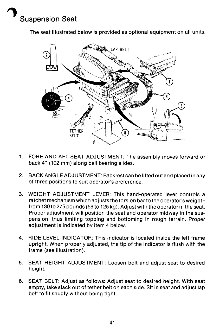 Proper adjustment will position the seat and operator midway in the sus-