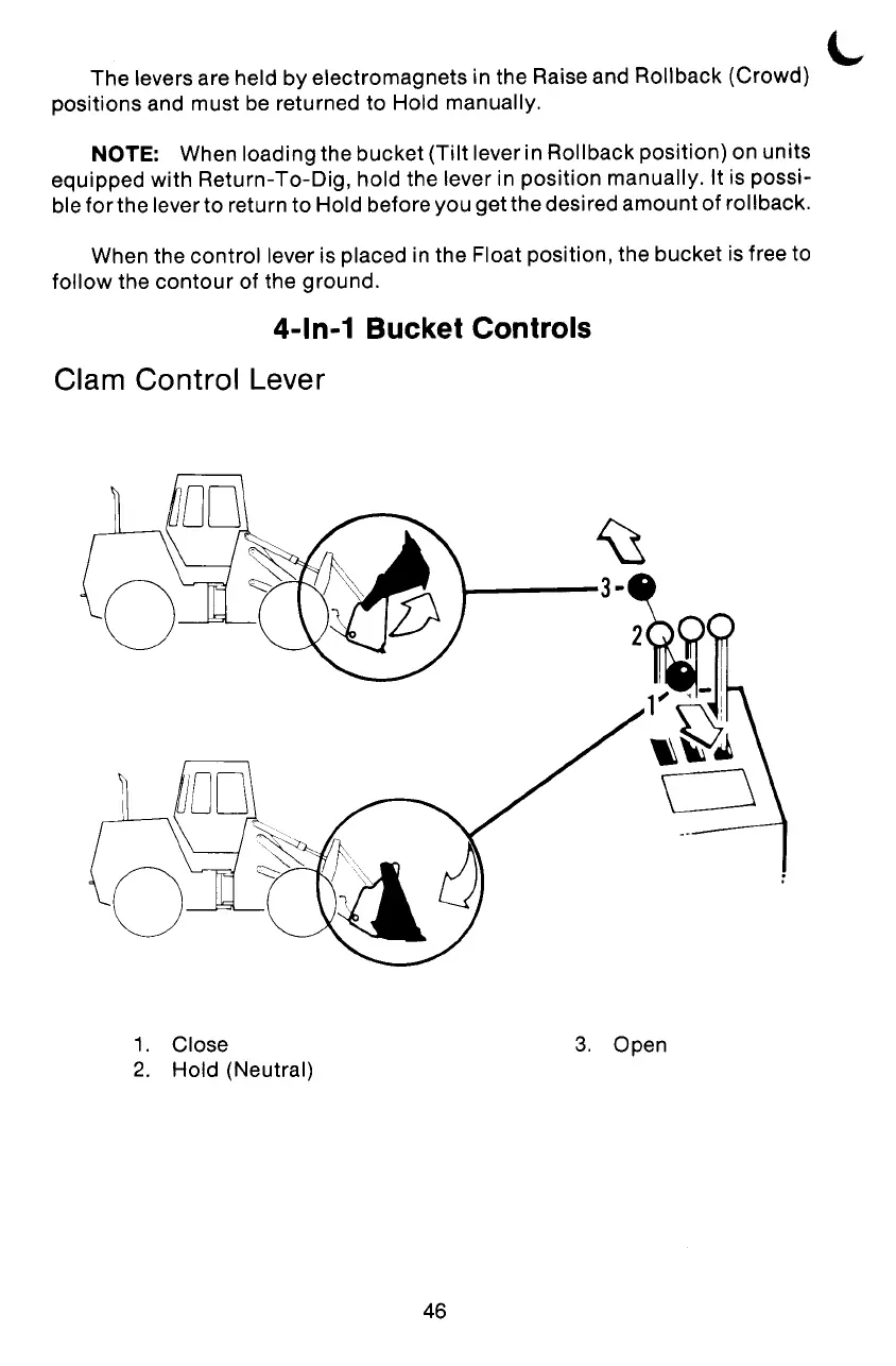 equipped with Return-To-Dig, hold the lever in position manually. It is possi-