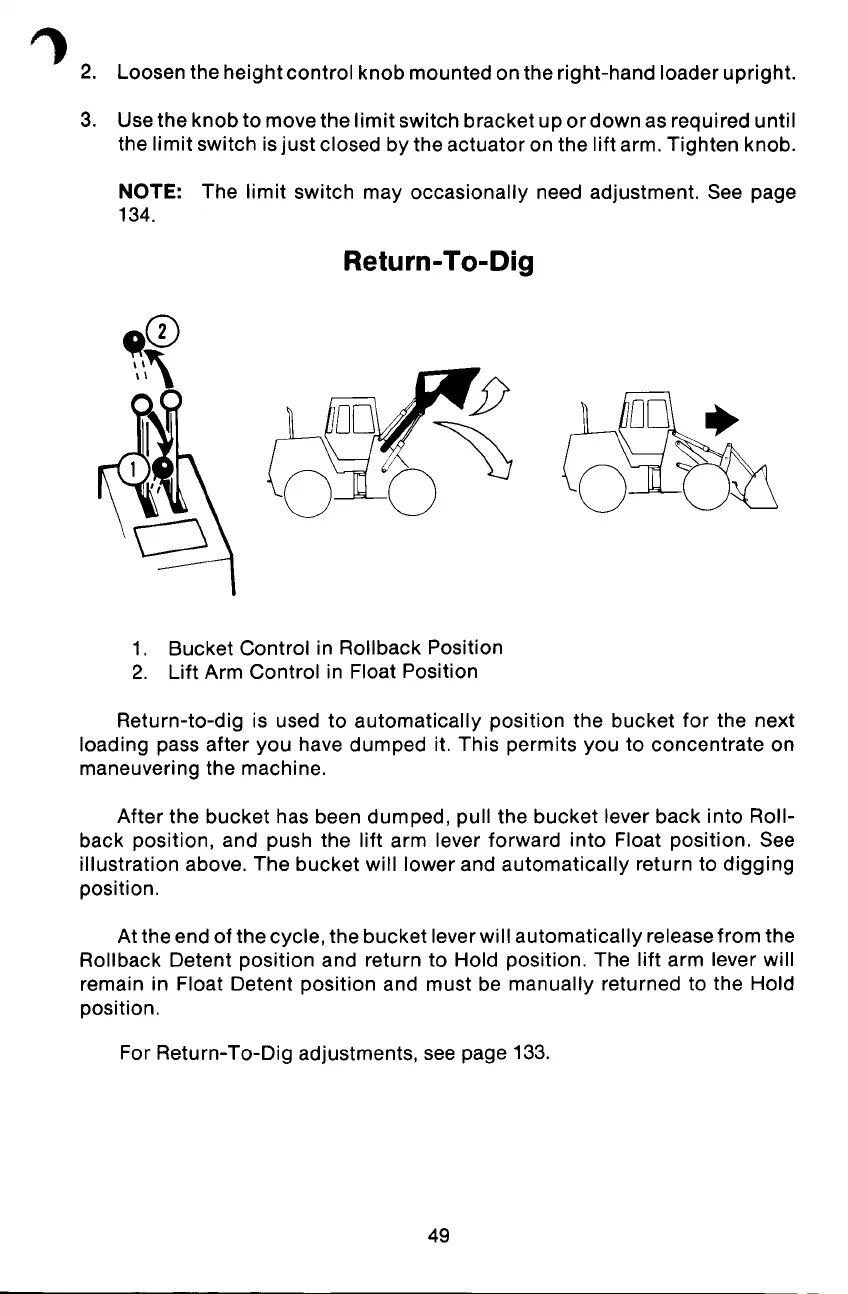 Rollback Detent position and return to Hold position. The lift arm lever will