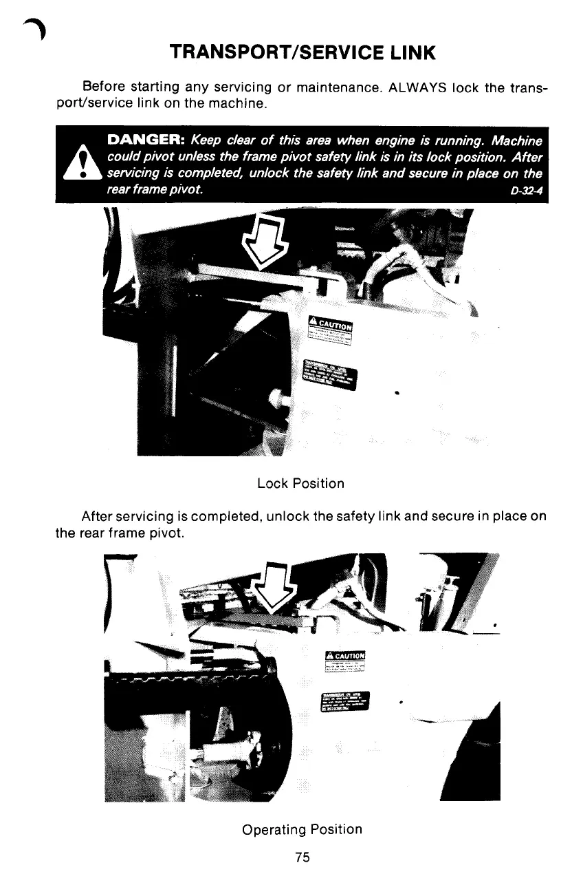 could pivot unlessthe frame pivot safety link is in its lock position. After