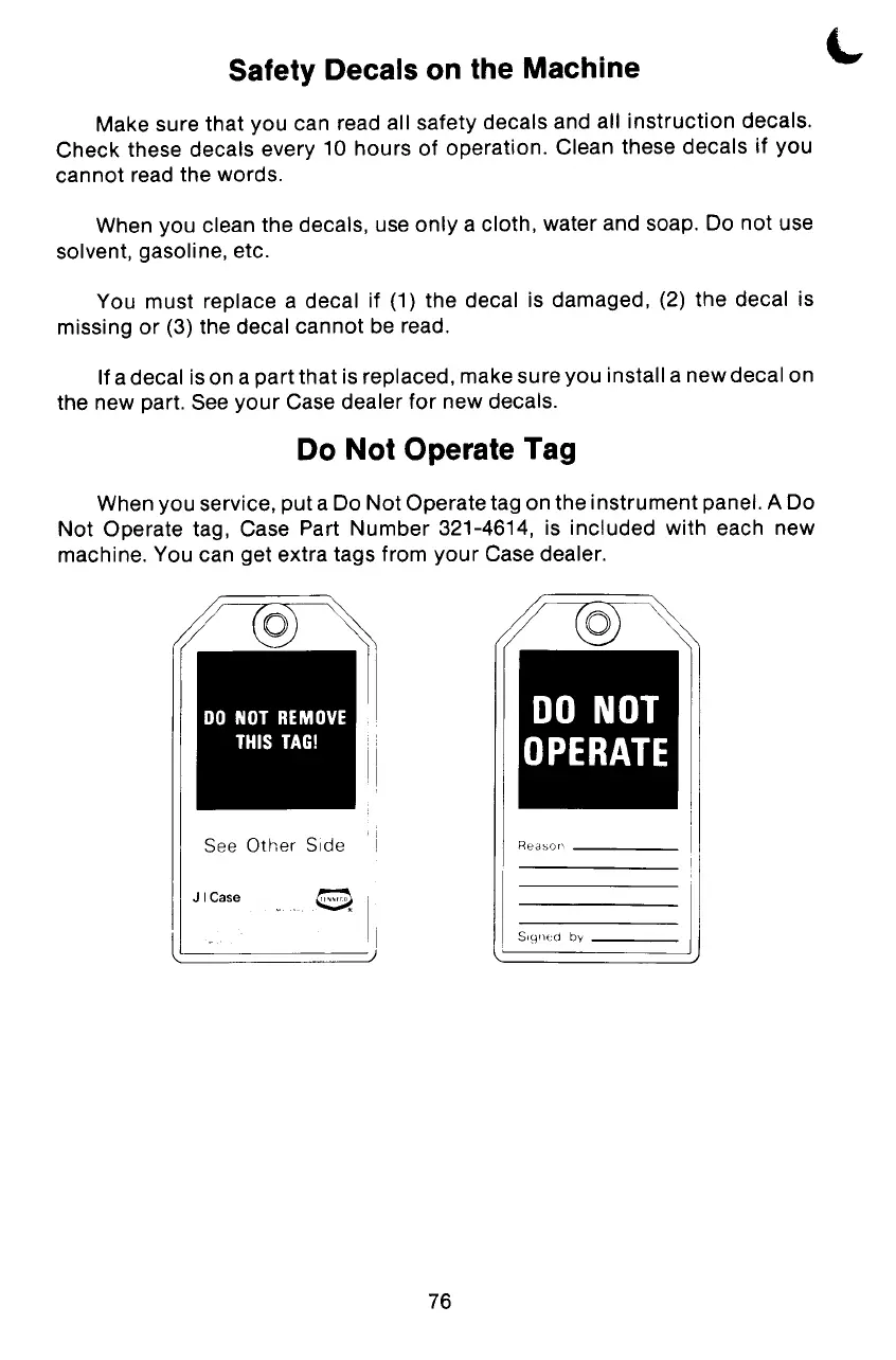 Not Operate tag, Case Part Number 321-4614, is included with each new