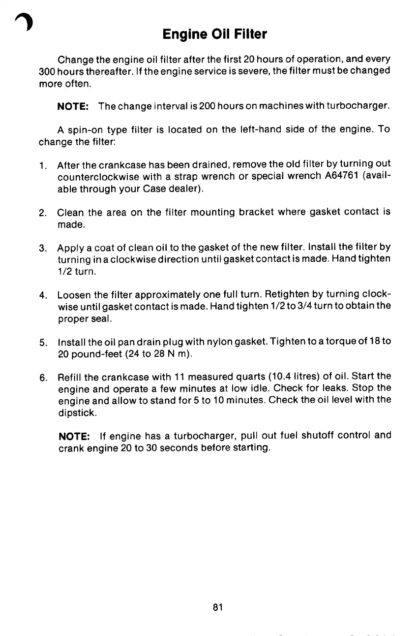 NOTE: The change interval is 200 hours on machines with turbocharger.