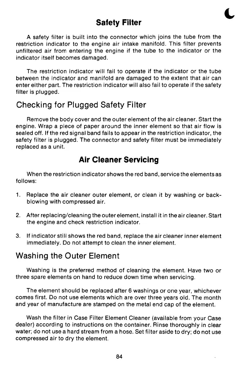 3. If indicator still shows the red band, replace the air cleaner inner element