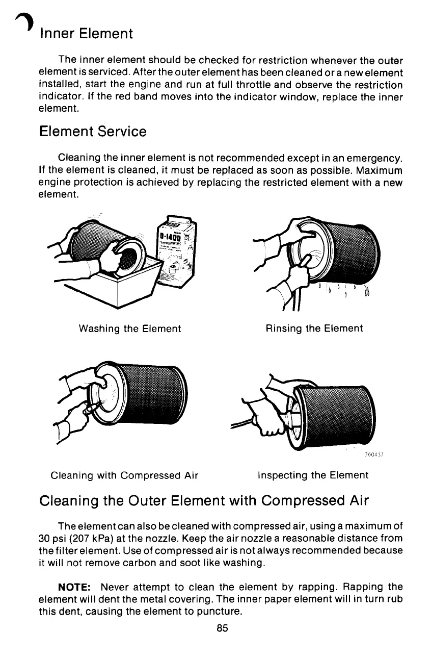 element is serviced. After the outer element has been cleaned or a new element