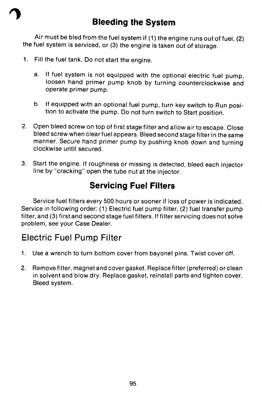 Service fuel filters every 500 hours or sooner i·floss of power is indicated.