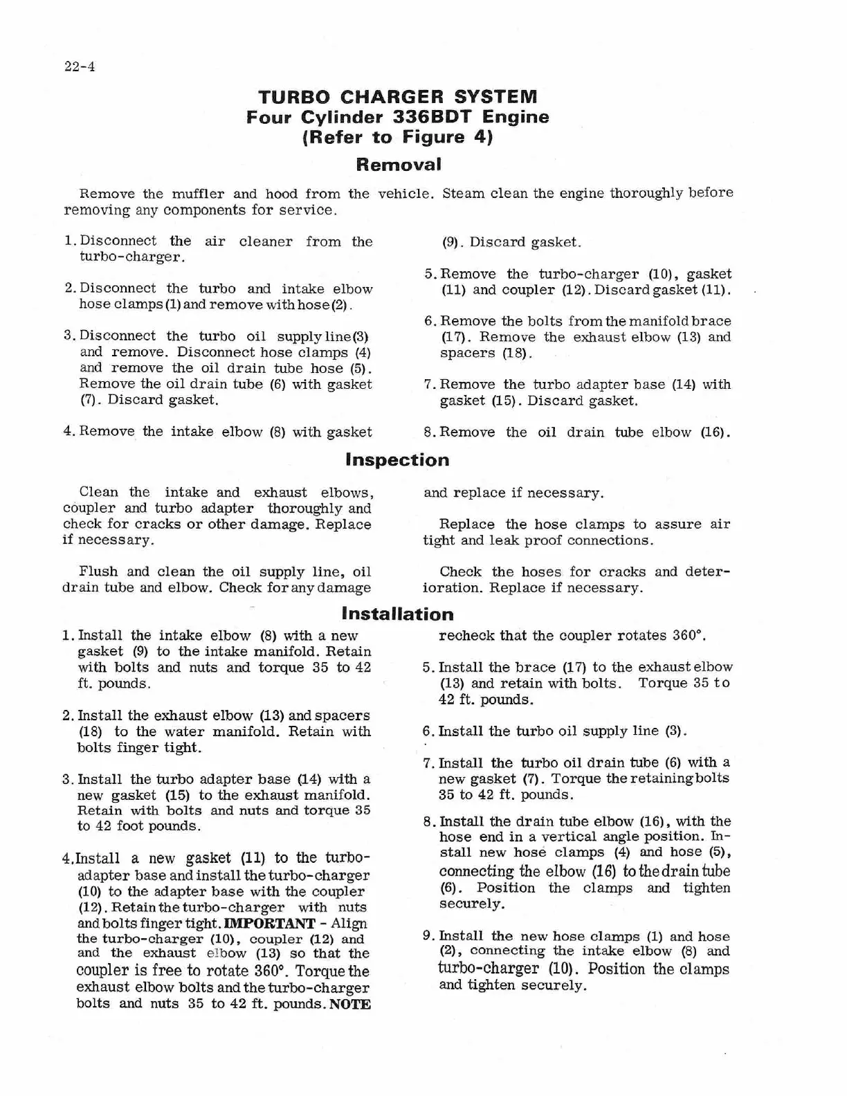 Case W9 - Turbo Charger System; Turbo Charger Removal; Turbo Charger Inspection and Installation