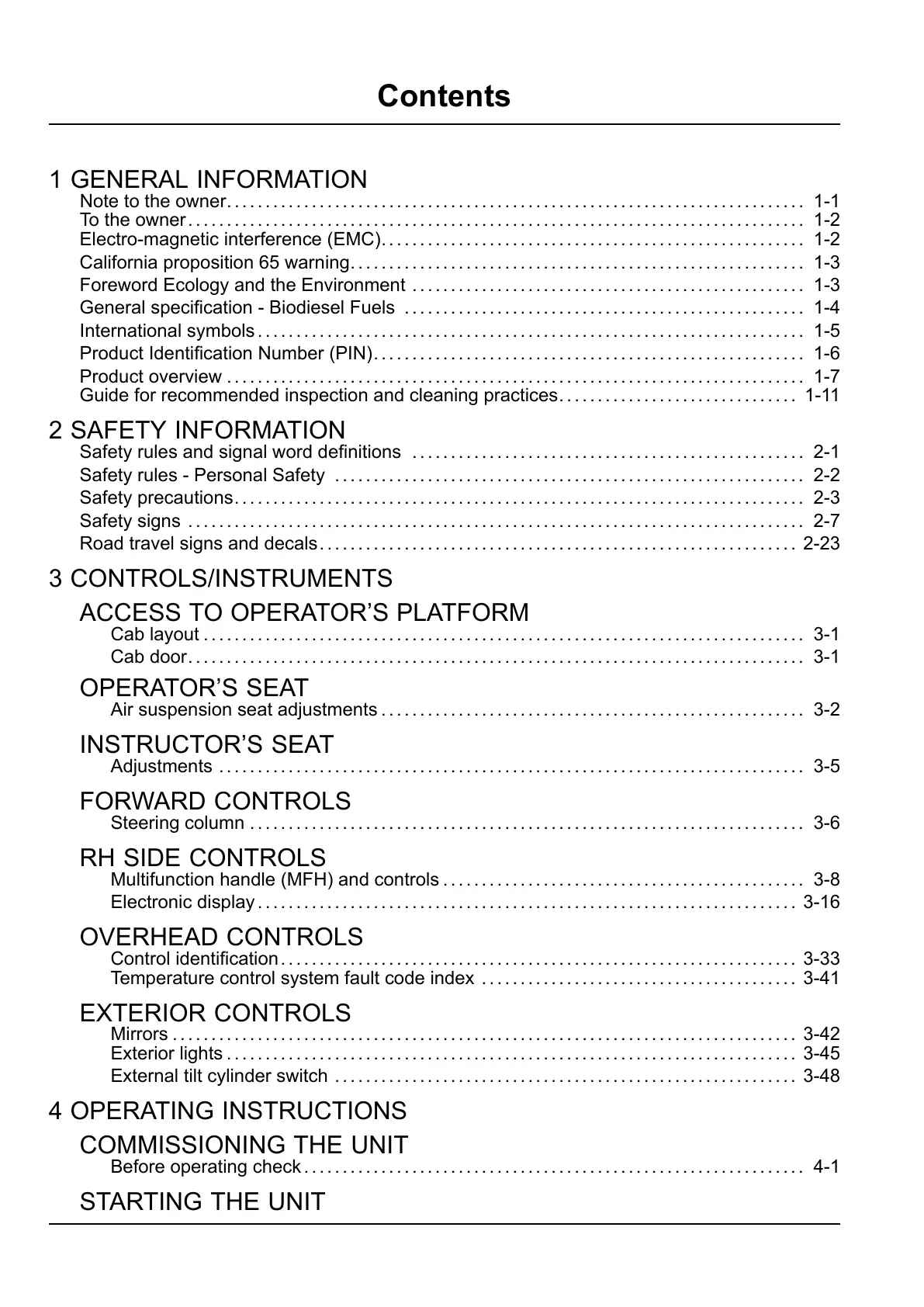 Cab layout . . . . . . . . . . . . . . . . . . . . . . . . . . . . . . . . . . . . . . . . . . . . . . . . . . . . . . . . . . . . . . . . . . . . . . . . . . . . . . 3-1