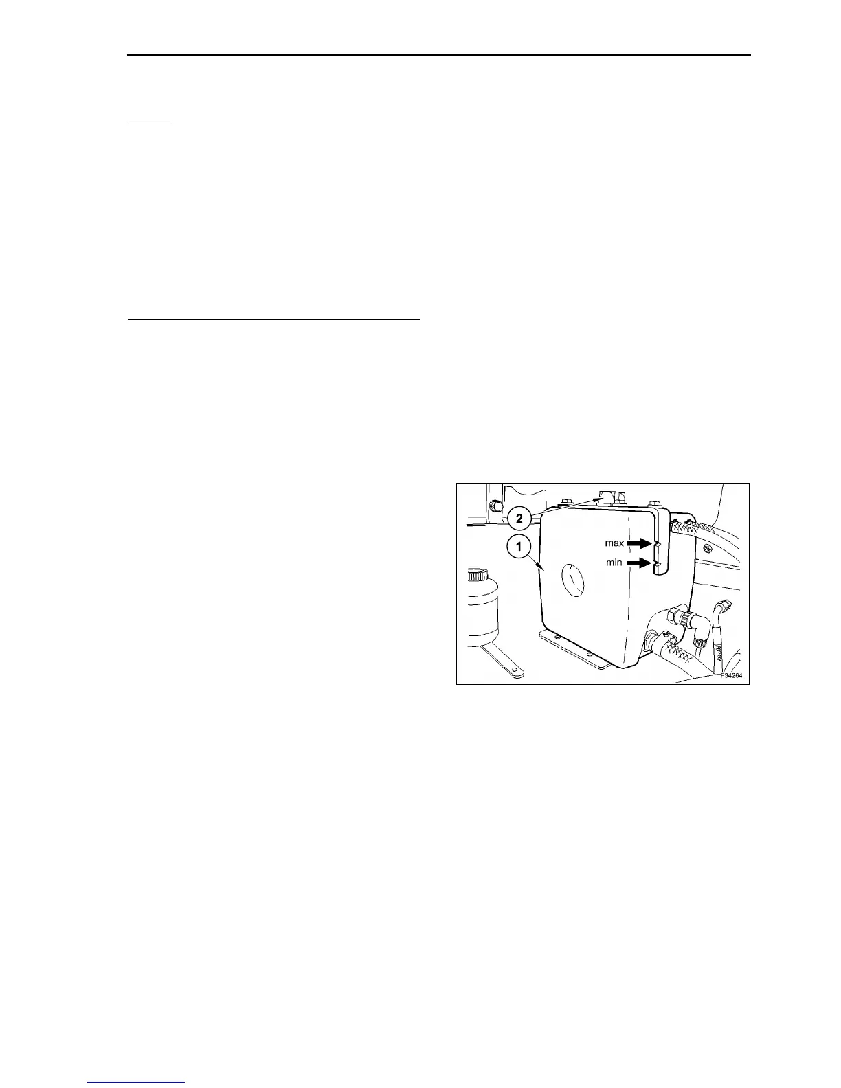 and “max” of the surge tank (1). If necessary, top up